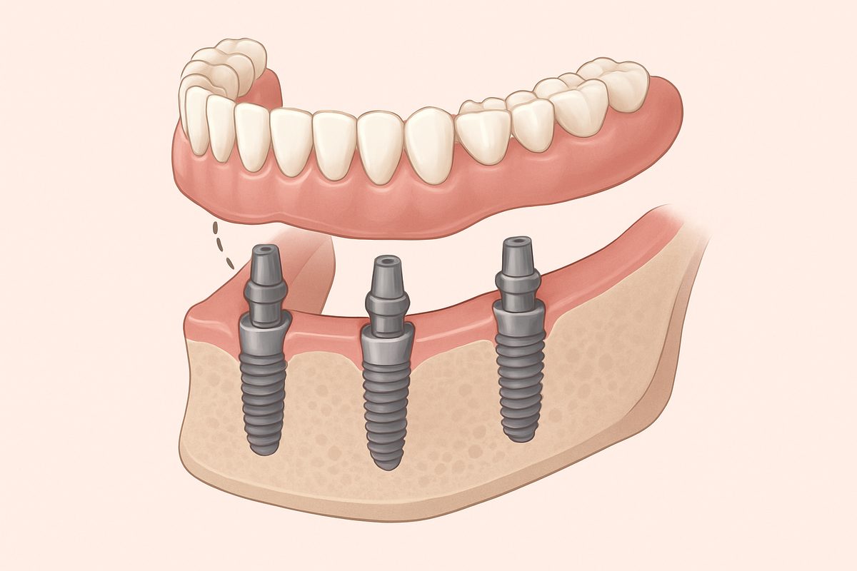 Once implants are stable, your dentist will connect attachments or place the final fixed bridge. Some practices offer same-day provisional teeth or immediate-load options in specific cases, while others complete final restorations after full healing.